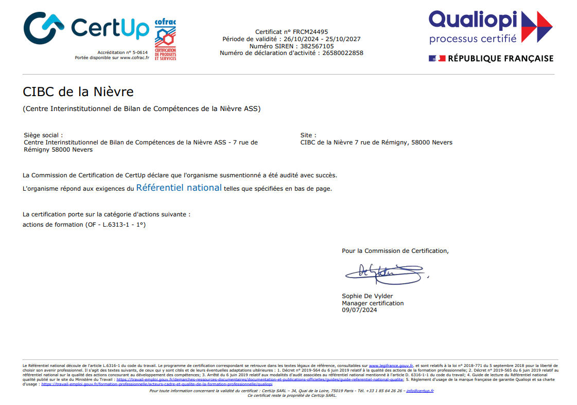 Son expertise est reconnue par France Compétences comme l’opérateur en Conseil en Evolution Professionnelle sur le département de la Nièvre pour les salariés du secteur privé et les indépendants.